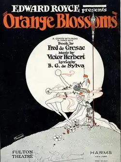 Orange Blossoms is a 1922 musical comedy with music by Victor Herbert, lyrics by Buddy DeSylva, and a book by Fred de Gresac, based on her own 1902 French play La Passerelle which had also been translated and staged on Broadway in 1903 as The Marriage of Kitty.[1][2]