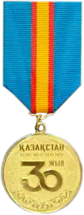 30th Anniversary of the Independence of the Republic of Kazakhstan Jubilee Medal Қазақстан Республикасының Тәуелсіздігіне 30 жыл медалі Qazaqstan Respwblïkasınıñ Täwelsizdigine 30 jıl medali |