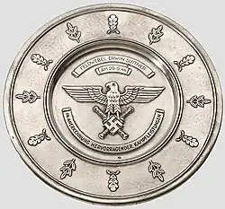 The Luftwaffe maintained two non-portable awards, the "Honour Goblet of the Luftwaffe" (Ehrenpokal für besondere Leistung im Luftkrieg) and the "Luftwaffe Honour Plate" (Ehrenschale für hervorragende Kampfleistungen der Luftwaffe). Recipients of both awards automatically received the Luftwaffe Honour Roll Clasp in January 1944.[11]