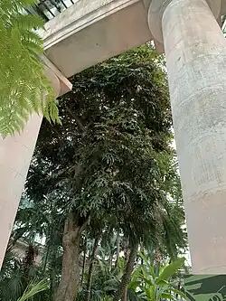 A specimen tentatively identified as this species has been growing at the "Vets Garden," a therapy garden attached to the Veterans Affairs Hospital of Sawtelle, Los Angeles, CA USA, (90073), for at least 30 years and perhaps more than 40. Its height is approximately 20 feet (6.1 m) and the width of its crown about 12 feet (3.7 m). It was not affected by a winter mid 20s /low 30s frost in early 2007.
