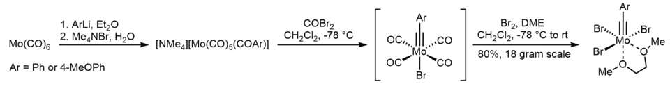 - ^ Tsai, Yi-Chou; Cummins, Christopher C. (2000). "Facile Synthesis of Trialkoxymolybdenum(VI) Alkylidyne Complexes for Alkyne Metathesis". Organometallics. 19 (25): 5260. doi:10.1021/om000644f.