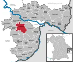 The market town lies 20 km west of Passau, 10 km south of Vilshofen an der Donau, 12 km northwest of Bad Griesbach and 20 km north of Pocking.