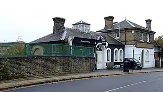 ![]() Station buildings next to the bridge over the railway line | |