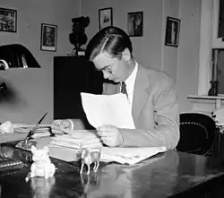 Otha Donner Wearin (January 10, 1903 – April 3, 1990) was an American writer and politician. Elected as the youngest member of President Franklin D. Roosevelt's first "New Deal" Congress, his political career stalled in 1938 when he gave up his seat in the United States House of Representatives at Roosevelt's urging to run for a U.S. Senate seat held by another Democrat, Guy Gillette, but primary voters rallied behind Gillette.[1] He became a prolific writer, which led to his election to the Cowboy Hall of Fame.[2]