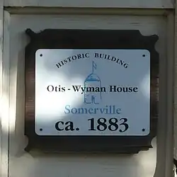 The Otis-Wyman House is a historic house at 67 Thurston Street in Somerville, Massachusetts. This 2+1⁄2-story wood-frame house, built c. 1883, is a well-preserved example of Queen Anne styling. It has projecting gable sections, bays, and porches typical of the style, as well as decorative trim elements such as bargeboard, bracketed eaves, and gabled window hoods. It was originally owned by William R. Otis, a cabinetmaker, and later the residence of Charles B. Wyman, a restaurant owner.[2]