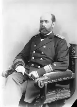 After Naval School graduation at Kiel[4] and Atlantic training voyages on the Prussian sail frigate SMS Niobe, he was commissioned Unterleutnant zur See [Lieutenant JG] in 1867.[5] He served a brief tour aboard the royal yacht SMS Grille. During the Franco-Prussian War of 1870-1871 he commanded the coastal gunboat Natter. Although a French fleet maneuvered in the North Sea where Natter was deployed, "the French battle plan had little impact on Diederichs' wartime service, which proved somewhat anticlimactic".[6] After hostilities ended, his ship was deactivated. From 1871 to 1874, he attended several terms at the postgraduate Naval War College, the German Imperial Naval Academy (Marineakademie), with intermittent training cruises in a class with four future admirals.[7]