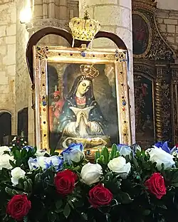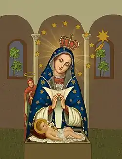 Our Lady of Altagracia or the Virgin of Altagracia, (Our Lady of High Grace) in Catholic Marian devotion, is a title of Mary by which she is honored as the “protective and spiritual mother of the Dominican people.”[1][2] The title also is used for a particular image of Mary with the baby Jesus in a manger. Her patronal feast day is January 21, a holiday/non-working day in the Dominican Republic on which many faithful devotees of the Virgin come from all over the Dominican territory to the Basilica-Cathedral of Our lady of Altagracia, in the province of La Altagracia. Devotion to her is also prominent in areas outside of the Dominican Republic where Dominican influence flourishes, including New York City, where her feast marks the beginning of Dominican Heritage Month.[3]