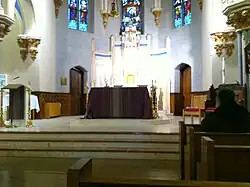 ![]() View of the sanctuary of the main church at the Parish of Our Lady of Good Counsel, Moorestown, New Jersey | |