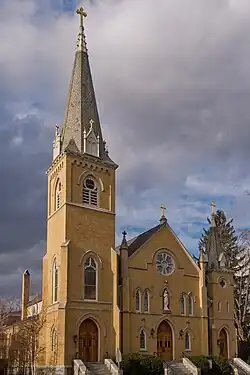 The first recorded Mass celebrated in Westport was said in 1853 by Rev. John Brady of Norwalk, in the Universalist Church on Main Street. For many years Westport was a mission of St. Mary's Church in Norwalk.[1] A church built by Rev. Dr. Mulligan was dedicated on August 15, 1860. In 1876, Rev. M.P. Lawlor was made pastor in Fairfield, with responsibility for Westport as well.[2]