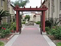 Our Lady of the Rosary Parish was founded in 1927 by Bishop John Cantwell of Los Angeles. The first pastor assigned to the parish was the Rev. Patrick Curran. A rented house on Sierra Way initially served as a combination church and rectory. Construction of the present church building began in May 1928. It was completed in the Mission Revival architectural style in September of the same year. The present rectory was built in 1936. In addition to their parish responsibilities the parish priests also served as the chaplains of St. Bernardine, County and the State hospital in Patton, as well as the Native American Reservation at Del Rosa and Masses at Lake Arrowhead in the summer.[1]