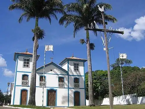 In October 1737, the Book of Deaths started to register deaths in Corumbá de Goiás, where the Chapel of Our Lady of Peñafrancia, inaugurated in 1734 and subordinated to the Rosary Parish, began to be attended by Father Antônio Soares.[1][9] The Chapel of Peñafrancia, elevated to the status of Mother Church in 1840, was the pioneer of the parishes of Abadiânia, Alexânia and Cocalzinho.[10][11][12] The Portuguese influence of the Our Lady of the Rosary Parish replicated the traditions of Pirenópolis in the Chapel of Peñafrancia in Corumbá, such as the Brotherhood of the Blessed Sacrament, Holy Week celebrations, Feast of Saint Sebastian, Feast of the Divine, Choir, Orchestra and band in the masses and processions, as well as the Cavalhadas, held in the city in September during the patron saint's feast.[9]