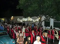 In Pirenópolis, the manifestations of the religious traditions of Holy Week have been held since the 18th century, funded by brotherhoods, such as the Blessed Sacrament, and housed exclusively in parish churches.[7][21] The rites of the celebration of the Passion of Christ, liturgical and paraliturgical acts, constitute an exceptional cultural moment, of emotional and affective value to the people of the place, and has been conceived since its origin and was the celebration of greatest local expression; it is the period when most celebrations were held.[21][42]