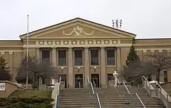 This high school building was listed on the National Register of Historic Places in 1986 for its architectural significance.[4] However the alterations in the late 1990s compromised the school's historic appearance, and it was removed from the National Register in 2000.[5]