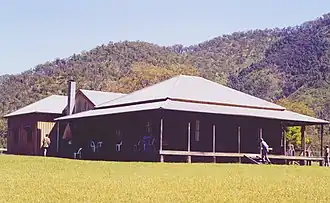 The East Kunderang Homestead is set on the banks of the Macleay River, 112 kilometres (70 mi) east of Armidale via Wollomombi and the Kempsey Road. Access to the homestead is along steep gravel roads and a 4WD is required along with a permit. This historic homestead built in the 1890s, of solid cedar throughout, was once the centre of a grazing empire.[15] It has now been carefully restored by the National Parks and Wildlife Service to provide comfortable and modern accommodation. Edward Fitzgerald's grave is uphill from the rear of the homestead near a clump of gum trees along the fence line. Edward was drowned in 1900 while returning on horseback from the mail run. The homestead may be booked for up to ten people for a minimum of two nights.