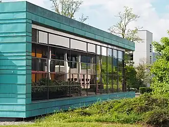 The campus offers a variety of leisure offerings for students and staff of the university. On the main campus, a cafeteria/canteen provides food supply for staff and students.[10] In the institutional building, there are several sitting areas, a student café called Matrikü(h)l which is operated by older students. The institutional building is also home to the AStA, the student committee of the PH Schwäbisch Gmünd, which helps students with general questions and organizes events.[11]