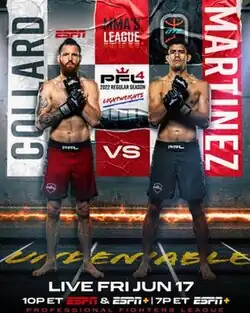 1. ^ "2022 PFL 4 matchups announced: Clay Collard vs. Alexander Martinez headlines June 17 event". MMA Junkie. 2022-05-18. Retrieved 2022-05-18.