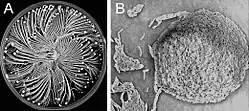 15. ^ a b Ben-Jacob E, Cohen I, Gutnick DL: Cooperative organization of bacterial colonies: from genotype to morphotype. Annu Rev Microbiol 1998, 52:779-806.