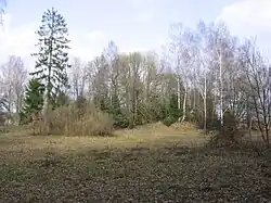 The park was established in a landscape style in the second half of the 19th century around a palace owned by the von Zitzewitz family, utilizing natural topography and existing tree stand. The manor was destroyed in the 1960s.[1] In 1996, a White Card (Inventory Card for Monuments of Architecture and Construction) was created, listing it as a palace and farm complex. On 6 May 1997, the Provincial Conservator of Monuments in Słupsk entered it into the Słupsk Voivodeship register of monuments under decision no. PSOZ-I-5340/16/97, with registration number A-353 as a palace park.[13] After the 1999 administrative reform, it was listed under registration number A-1630 in the Provincial Office for Monument Protection in Gdańsk.[14]