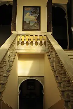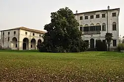 The complex consists of a central body, two lateral "barchesse" (wings), a chapel, a park and from the remains of a hemicycle situated at the front. The main building has a rectangular plan and is on three floors. The structure is typical of the Venetian Villas. Is made up of a through-hall onto which overlook symmetrically the doors of the side rooms, by a monumental staircase with pincer form leading to the main floor which has a similar shape. A service staircase leads to the second floor that was probably inhabited by the servitude and used occasionally from the property in the cooler months. Front of the building along the highway, lies what remains of an exedra which once was an integral part of the complex and of which now remains only a niche where there is a statue which is said to represent Hercules. Now this annexe is not owned, has lost most of the ornaments of which was composed and is detached from the park which is located in the back of the villa and that instead still keeps six well-preserved statues positioned over the original foundations. These statues, paired two by two, constituted the entrance of the three avenues penetrating into the Italian park that now no longer present.