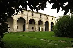 The two lateral "barchesse" are like two large open wings detached from the main structure. These adjacencies are on three floors. The facades that protrude toward the villa are marked by seven arches covered with ashlar while the arches that face the highway are enriched in the keystone with masks and seals.