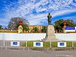 In the 16th and 17th centuries, the area where the palace is located was part of a Jesuit farm in the outskirts of Rio de Janeiro. With the expulsion of the Order in 1759, the property was dismembered and passed into private ownership. In the early 19th century, the area became known as the Quinta da Boa Vista (Estate with a Beautiful View), because the Tijuca Forest, Corcovado, and Cajú beach could be seen from it; it belonged to a Portuguese-Lebanese slave merchant, Elie Antun Lubbus, (Elias Antônio Lopes in Portuguese),[3] who erected, around 1803, a hilltop manor house from which one could see Guanabara Bay. When the Portuguese court was transferred to Brazil, in 1808, Lopes donated his farm to the prince regent, João VI. João VI appreciated the gift and stayed for long periods in the manor house. Before belonging to the monarchy, the residence was just one of many colonial-style mansions scattered throughout the country. With the arrival of João VI to Brazil, who had left Lisbon fleeing Napoleon in 1808, countless houses in Rio were expropriated to house the royal entourage. Lopes preempted that fate for the Quinta da Boa Vista, and in return, João VI granted Lopes titles of nobility and a fat indemnity. The mansion underwent many renovations over the decades, including the addition of an imposing masonry and cast-iron gate, the erection of a Moorish style side tower, construction of a semicircular staircase to the second floor residence, and, later, a second tower in the neoclassical style. A third floor was added, and the Moorish tower rebuilt in neoclassical style. All of the changes left the Palace of São Cristóvão appropriate to the power of the Brazilian Empire at its height. In 1847, Parliament approved a government bill that would allocate 240 contos de reis to complete the seemingly endless reforms. For Senator Clemente Pereira (PA), Pedro II had to leave Sao Cristóvão, Pereira's proposal was approved, but the government did not even design a new imperial palace.[4]