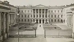 In the middle of the 17th Century, a residence was built for Chancellor Jan Leszczyński which was probably designed by the Italian architect Giovanni Battista Gisleni. In the second half of the 18th century the palace was owned by Józef Potocki, and then by the Zieliński family. The palace was fundamentally rebuilt from 1823 to 1825 by Antonio Corazzi in neo-classical form as the base of the Ministry of Revenues and Treasury for its minister Franciszek Ksawery Drucki-Lubecki. There was the Stock Exchange, the Minister's Palace as well as the Ministry building all adjacent to each other.[3]