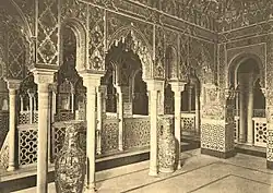 The Palacio de Xifré is a Madrilenian palace now disappeared that was in the Paseo del Prado, at the corner Calle de Lope de Vega, opposite the Prado Museum. It was one of the best examples of Neo-Mudéjar architecture in Madrid and one of the palaces that the Spanish financial elite of the second half of the 19th century had built along the paseos del Prado, Recoletos and la Castellana.
