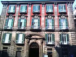 The Palazzo d'Aquino di Caramanico in central Naples, Italy, is a Palace located on via Medina in the Quartiere San Giuseppe of Rione Carita. It is flanked by the contemporary Palazzo Giordano and two doors down from the tall modern NH Ambassador Hotel.