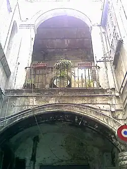 The palace was once the property of the Mastrilli family, lords of Marigliano. Traces of a prior medieval building remain on the site, where the small church of San Galione a via Nilo once stood. The palace is now in a much decayed state. The palace is near the Palazzo d’Afflitto and Palazzo del Panormita on the narrow alley that is Via Nilo.[1]