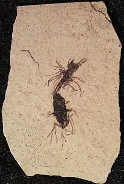 The majority of the lake deposits are compression fossils in lake bed sediments grouped informally into "Northern", "Central", and "Southern" sites.[6] The Northern sites are composed of unnamed Ootsa Group formations which outcrop as the "Driftwood shales" near Smithers, British Columbia, sites now considered lost in the Quesnel, British Columbia area,[7] and the "Horsefly shales", of an unnamed formation and unnamed group which outcrop around Horsefly, British Columbia.[6] The Central sites represent Kamloops Group formations with the McAbee Fossil Beds, Tranquille River site and Falkland site, all in the Tranquille Formation, the Quichena site and Stump Lake site in the Coldwater Beds and outcrops of the Chu Chua Formation near Barriere, British Columbia. The Southern sites include the Princeton Group Allenby Formation sites surrounding Princeton, British Columbia, such as "Nine Mile Creek", "One Mile Creek", "Pleasant Valley", "Thomas Ranch", "Vermilian Bluffs", and "Whipsaw Creek". The most southerly of the Okanagan Highlands lakes, the Klondike Mountain Formation in Northern Ferry County, Washington include the "Boot Hill", "Corner Lot", "Gold Mountain", "Knob Hill", and "Mount Elizabeth" localities.[6] Closely correlated with the Klondike Mountain Formation are the Penticton groups Kettle River, Marama and Marron Formations in the Boundary District along the Canada-United States border.[8]