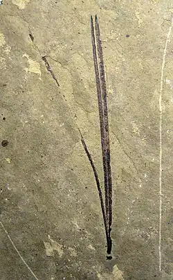 Both an undescribed member of the fossil quillwort genus Isoetites[22] and the spikemoss genus Selaginella[23] have been found in the Klondike Mountain Formation, while an additional fossil deemed Cf. Selaginella was later reported from the Allenby Formation.[19]