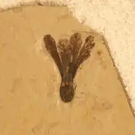 A group of six mosses were described from the Allenby Formation by Kuc (1972,1974) representing the genera Ditrichites, Hypnites and Plagiopodopsis , with two species placed in the morphogenus Muscites .[15][16] Further revision of the fossils was conducted by Milner (1980), who placed two species into the genus Plagiopodopsis and moved both species described as Palaeohypnum to other genera.[17] One further moss has been described from Horsefly, and placed in the living genus Aulacomnium by Janssens et al (1979).[18] Dillhoff et al. (2013) reference undescribed moss specimens from the Klondike Mountain Formation known from vegetative gametophytes,[19] and George Poinar, Jr. et al. (1999) illustrated an undescribed specimen of moss entombed in Hat Creek Amber.[10]