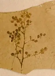 Five species of ferns and fern relatives have been described from the compression biotas and an additional four compression taxa that have been tentatively identified to family or genus. A series of four additional ferns have been described from premineralized specimens in the Princeton Chert and a fifth taxon is identified to genus. Several fern specimens were briefly mentioned from Horsefly but no taxonomic assignment was made due to lack of reproductive vegetation.[20]