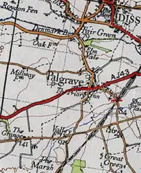 Palgrave is a village and civil parish in the Mid Suffolk district of Suffolk in eastern England.[1] It is located on the south bank of the River Waveney, opposite Diss in Norfolk and adjacent to the Great Eastern Main Line.