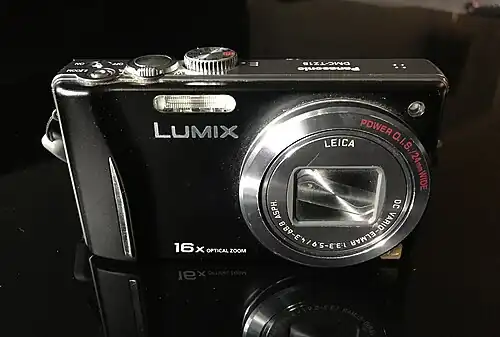Panasonic Lumix DMC-TZ18 (or DMC-ZS8 in North America) is a digital camera by Panasonic Lumix from the year 2010. The highest-resolution pictures it records is 14.1 megapixels, through its 24mm Ultra Wide-Angle Leica DC VARIO-ELMAR zoom lens.[1] The range of the focal length of the zoom lens from German company Leica Camera is from a strong wide angle with 24 mm (calculated equivalent to 35 mm film) up to the sixteenfold which is 384 mm, which amounts to a strongly magnifying telephoto lens.
