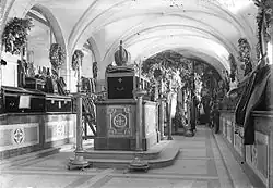 - Teresa Cristina of the Two Sicilies, wife of the deposed Brazilian Emperor Pedro II and therefore a member of the House of Braganza by marriage, was buried in the Pantheon from her death in December 1889 (shortly after the coup d'état that proclaimed Brazil a republic and sent the Imperial Family into exile), until 1921, when her remains were returned to Brazil together with those of her husband. At present her body rests at the Imperial Mausoleum in the Cathedral of St. Peter of Alcantara in Petrópolis.