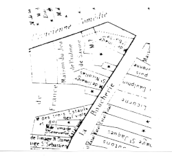 A document dating to 1274 makes reference to a "House of the Three Estaulx and the Violled Ox," which is understood to be a sign depicting three market stalls and an ox parading to music.[3] This house is also depicted on Sheet 9 of the Berty Archaeological Map of Paris.[4] However, there is an absence of definitive evidence linking this reference explicitly to the Parade of the Fat Ox.