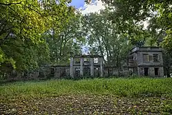 Parcice is a village with a picturesque park with the ruins of a noble manor house. The manor house was built in the late 18th century. It was built in the classicist style, with a four-column portico and an oval salon on the axis. Currently very neglected due to lack of financial resources, it has almost completely fallen into ruin. Previously, it was the seat of the nobility of Elżbieta Czartoryska, as evidenced by a tombstone from 1623, which was found right after the war and taken to the cemetery in Czastary. The later builder was Count Leopold Trepka, a fervent supporter of Calvinism. Then the owners were the Magnuscy family and Witold Nowicki. After World War II, a primary school operated in the manor house. The manor was devastated in the 1980s and 1990s. Within the park there are two Californian plane trees, unique in Europe, and a very old oak tree, the circumference of which is 6.25 m. In the manor, one could admire stylish joinery, floors, fireplaces and stucco: stylish tiled stoves were found and saved, which are located in the Museum in Ożarów (5 stoves). Currently, the destroyed ruins are in private hands. Since 2008, at the beginning of July, the manor park has hosted an exhibition of horses from the Wieruszów County.