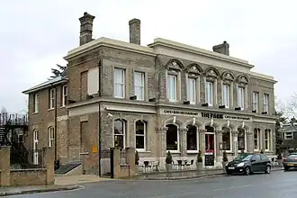 An earlier building on the site was known as The Greyhound in 1729, and briefly, the Guilford Arms in 1795. It was rebuilt in 1863, and became the Clarence Arms Inn, and later the Clarence Hotel.[2][3]