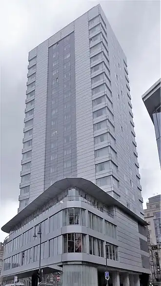 Park Plaza Hotel Leeds (also known as Royal Exchange House) is a tower block in Leeds, West Yorkshire, England. It is situated in central Leeds on City Square near Leeds railway station. The tower was completed in 1966 after construction began in 1965 and was then an office block. It was redesigned in 2004 to host the four star Park Plaza Hotel.