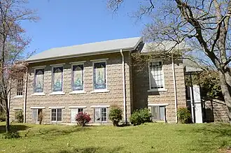 The Parkdale Methodist Church is a historic church on S. Church Street in Parkdale, Arkansas. Built out of rubble-faced and smooth concrete blocks that were shaped on site in 1926, it is an architecturally distinctive Plain-Traditional building with Classical Revival elements. The walls are lined with stained glass windows, and the entry is made through a recessed porch supported by Tuscan columns.[2]