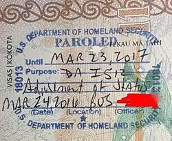 1. ^ a b c d e f g h i j k l Bruno, Andorra (October 15, 2020). Congressional Research Service (ed.). "Immigration Parole". Retrieved March 2, 2021.