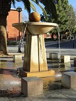 Chávez Fountain marks the intersection of the Paseo de San Carlos and the Paseo de César Chávez.
