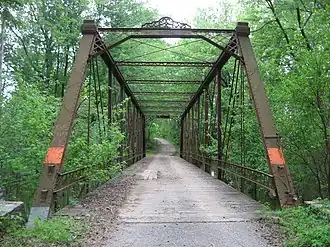 2. ^ "Indiana State Historic Architectural and Archaeological Research Database (SHAARD)" (Searchable database). Department of Natural Resources, Division of Historic Preservation and Archaeology. Retrieved June 1, 2016. Note: This includes Edith Sarra (August 2004). "National Register of Historic Places Inventory Nomination Form: Patoka Bridges Historic District" (PDF). Retrieved June 1, 2016. and Accompanying photographs.
