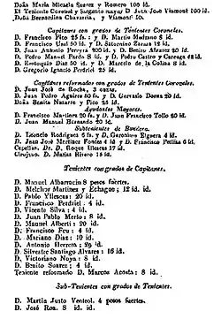Patricias Argentinas (English: Argentine Patricians) was fourteen women who on 30 May 1812 called for the collection of funds for the equipment of the rebel army fighting for freedom from Spain during the Argentine War of Independence. Each one of the signatures of the list financed one pistol each, and their example was followed by others. This was considered vital for the success of the war, as the Argentine army was very insufficiently equipped at the time.