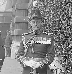 In September 1910 he relinquished command of his regiment and was placed on half-pay[29] and promoted to colonel on the same date.[30] In April 1912 he was appointed to command the Notts and Derby (Yeomanry) Mounted Brigade and on the outbreak of war over two years later was appointed brigadier-general.[31][32][27][33]