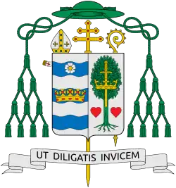 On September 9, 1958, Hallinan was appointed the eighth bishop of Charleston by Pope Pius XII.[4] He received his episcopal consecration on October 28, 1958, from Archbishop Amleto Giovanni Cicognani, with Archbishop Edward Hoban and Bishop John Krol serving as co-consecrators.[4] His installation took place at the Cathedral of St. John the Baptist in Charleston on November 25, 1958.[4] Hallinan selected as his episcopal motto: Ut Diligatis Invicem, meaning, "That You Love One Another" (John 15:12).[6]