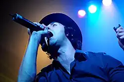 ![]() Smith performing with Maxïmo Park in Latvia in 2017 | |