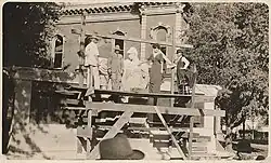 Margaret McMasters Van Slyke with the Peace Monument circa 1913
