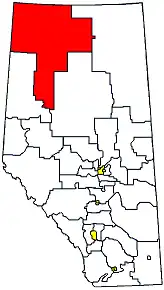Four First Nations are located within the riding's boundaries: Beaver First Nation, Dene Tha' First Nation, Little Red River Cree Nation, and Tallcree First Nation.